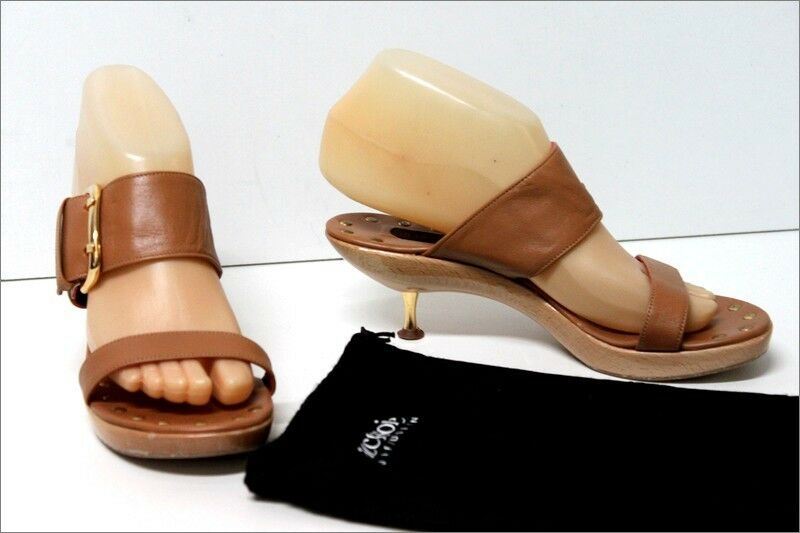 ACCESSOIRE DIFFUSION Mules Cuir Marron et Bois Verni T 37 TTBE