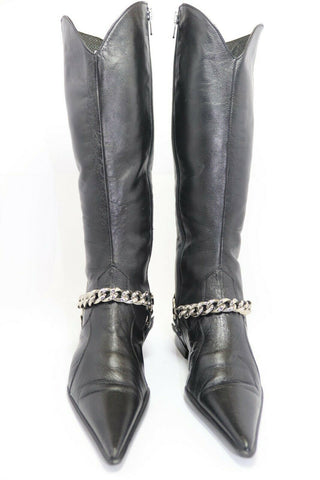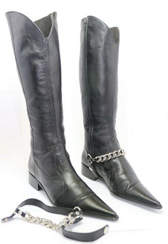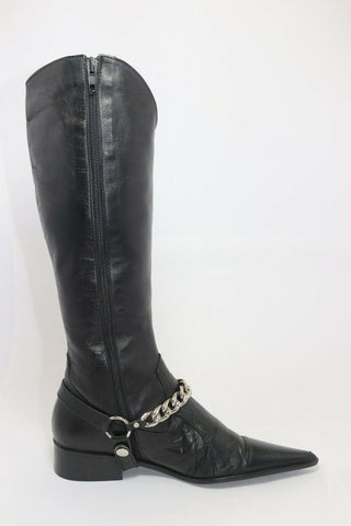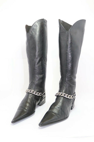 Bottes Pointu Cuir Noir Lisse T35 BE
