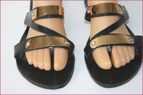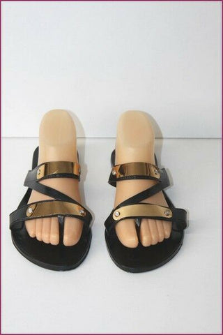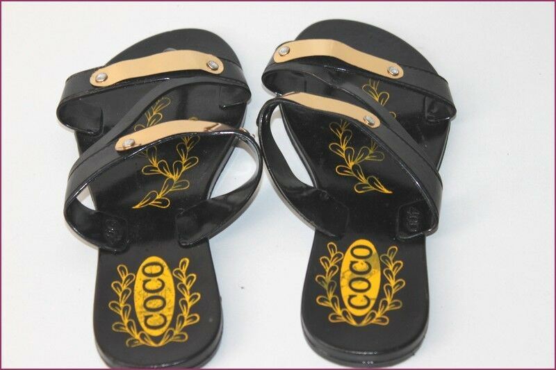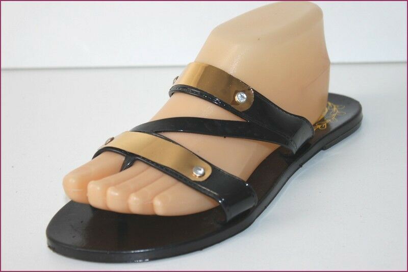 COCO Tongs Plastique Noir Bandes Dorées T 40 TBE