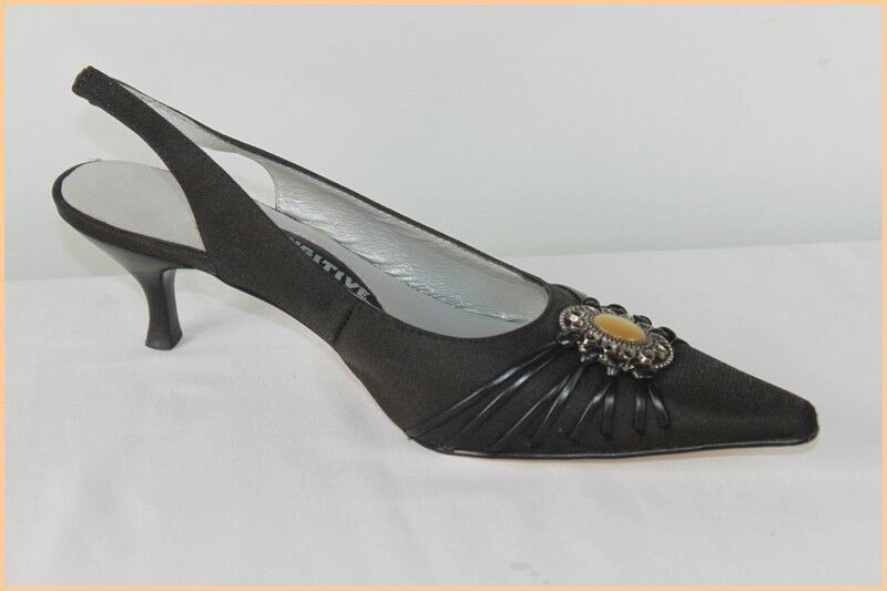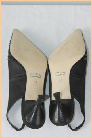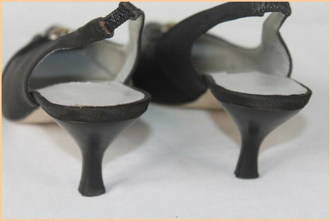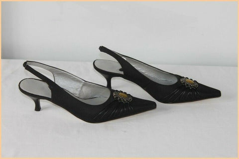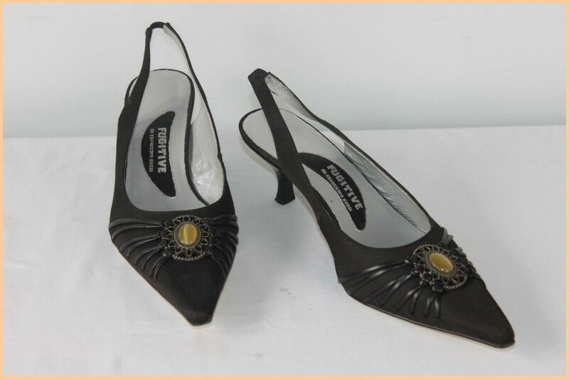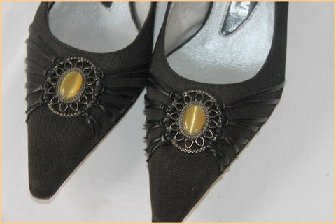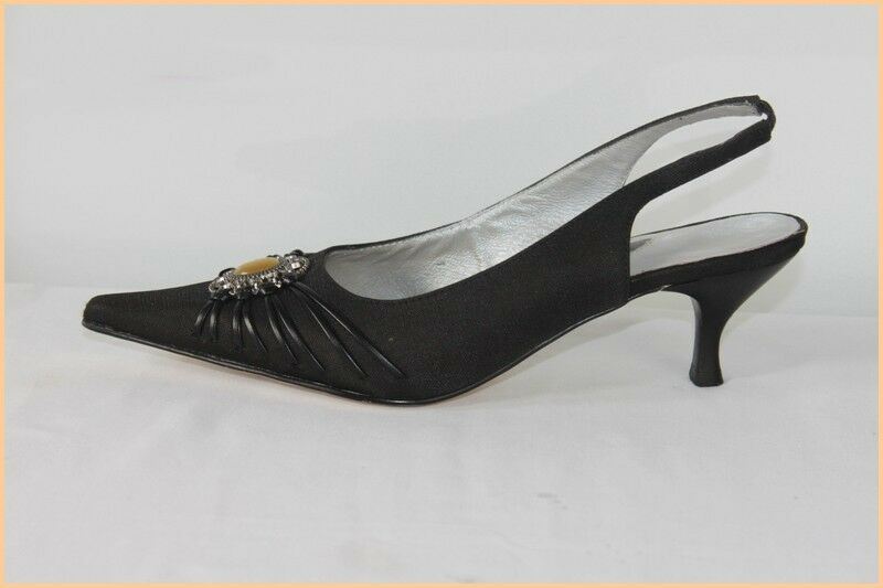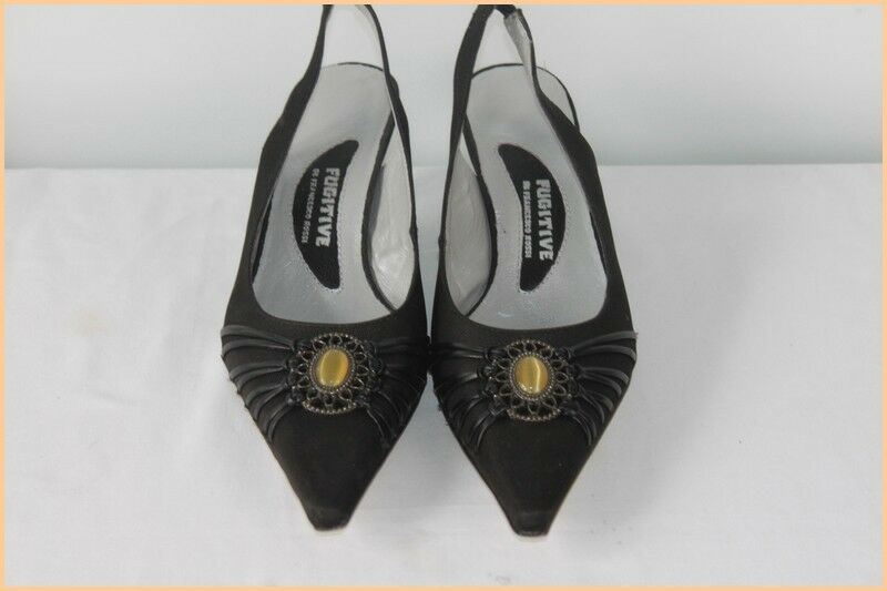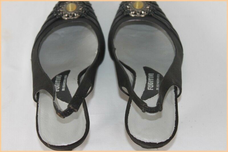 Escarpins Ouverts FUGITIVE Toile et Cuir Noir Bijou incrusté T 38 TTBE