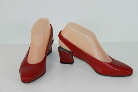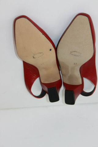 Escarpins Ouverts PAUL DE LA GRANGE Cuir Rouge T 37 TBE