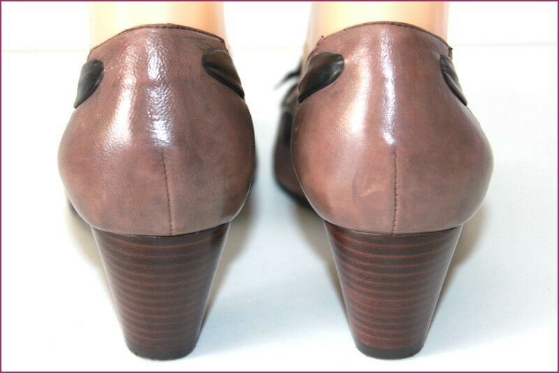 HEYRAUD Escarpins Cuir Bicolore Marron TAupe et Noir T 38 TTBE