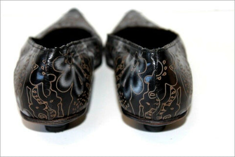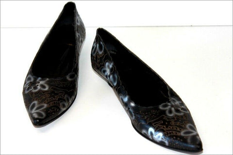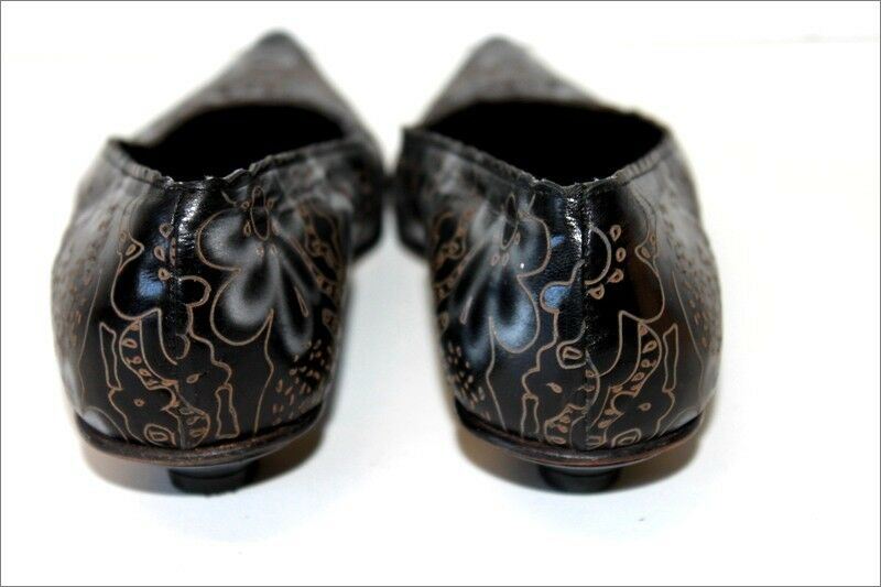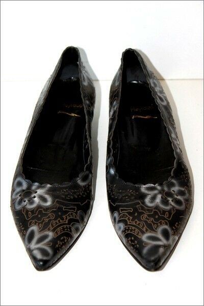HEYRAUD Escarpins Pointus Tout Cuir Imprimé Ajouré Petits Talons T 39.5 TBE
