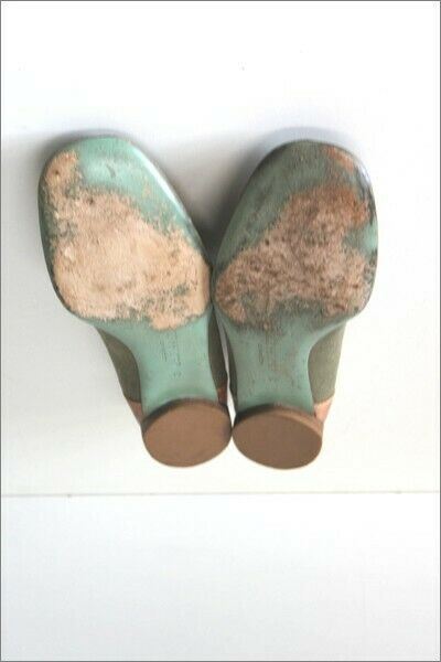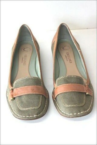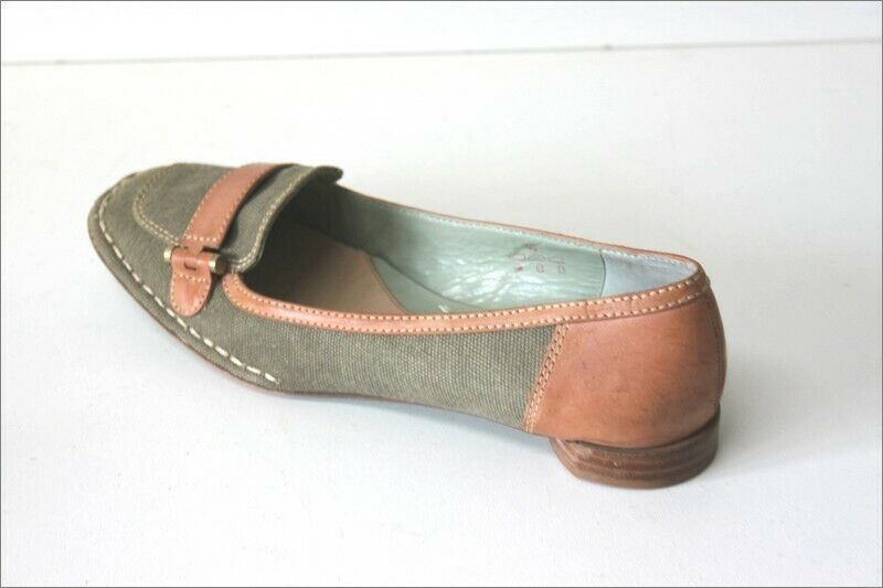 KESSLORD Escarpins Toile Vert Kaki et Cuir Marron Clair T 40 BE