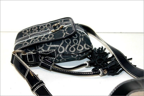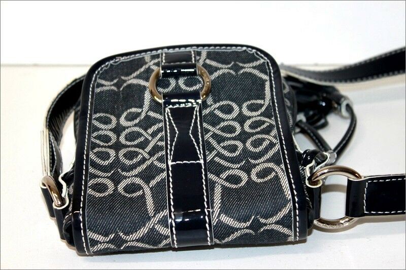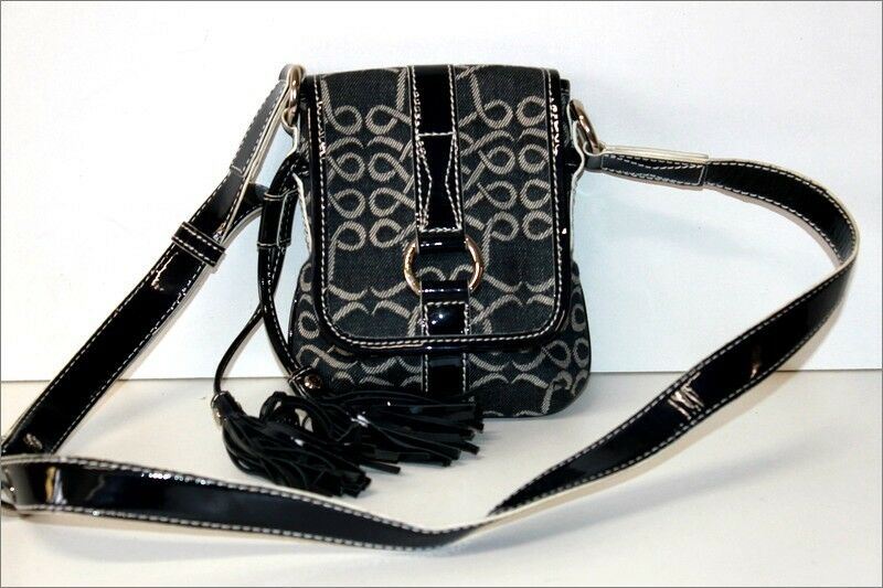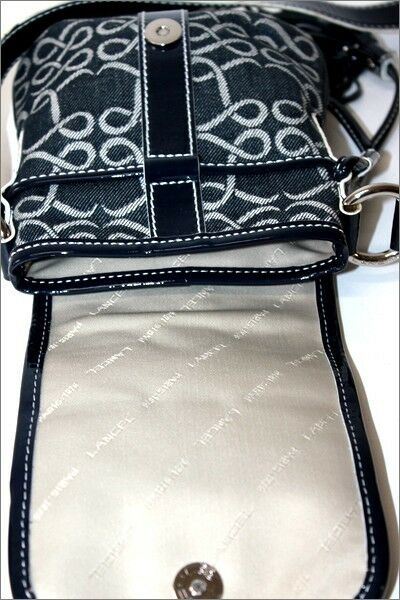 LANCEL Pochette Vintage Toile Imprimé Bleue Foncée Bandoulière TBE
