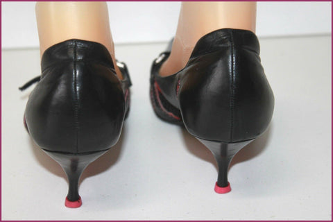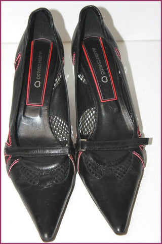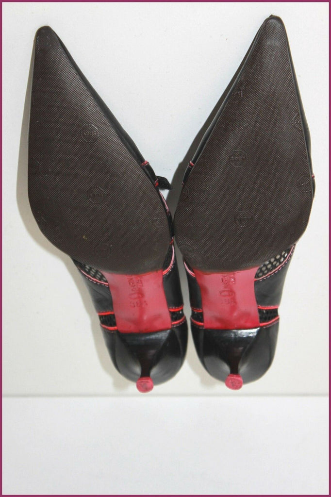 MARTINI OSVALDO Escarpins Pointus Tout Cuir Ajouré Noir T 38.5 TBE