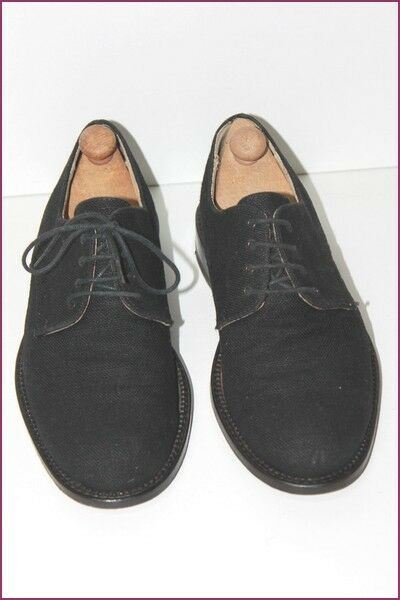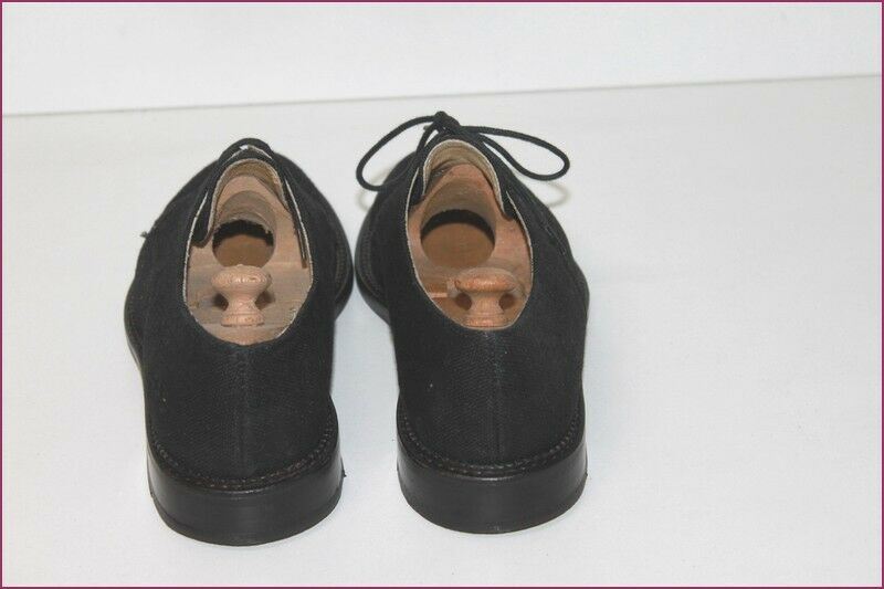 En très bon état Dessus tissu lin rigide, doublés Cuir Longueur de la semelle intérieure 25.7 cm Talon de 2.5 cm largeur dessous semelle 10 cm Semelle extérieure en cuir véritable