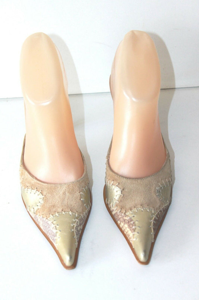 MINELLI Escarpins Mules Pointues Cuir Doré et Marron Clair T 35 TBE