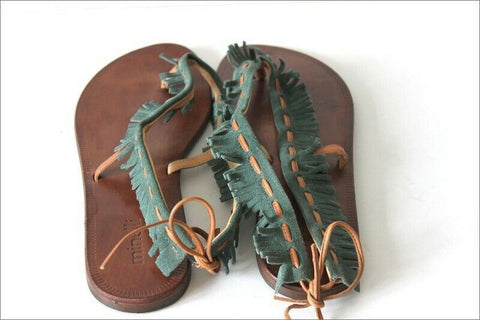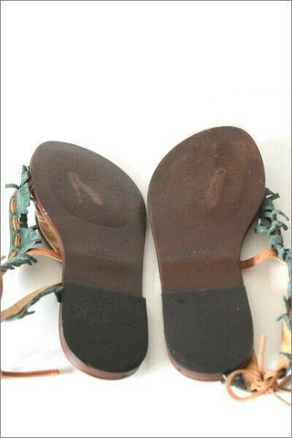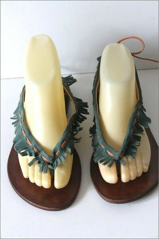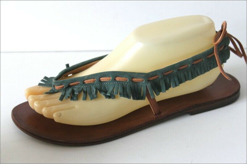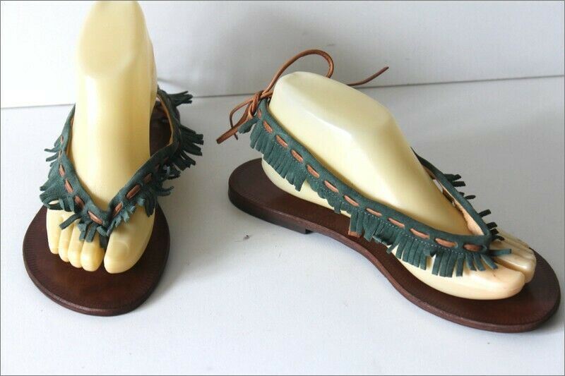 MINELLI Tongs Cuir Vert Lanières Franges T 39 TBE