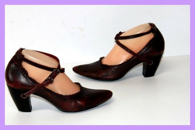 MURATTI Escarpins à Sangles Cuir Fripé Prune Nuancé T 38 TBE