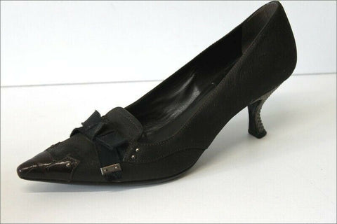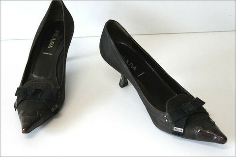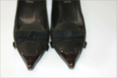 PRADA Escarpins Pointus Cuir Noir Doublés Cuir T 37.5 TBE