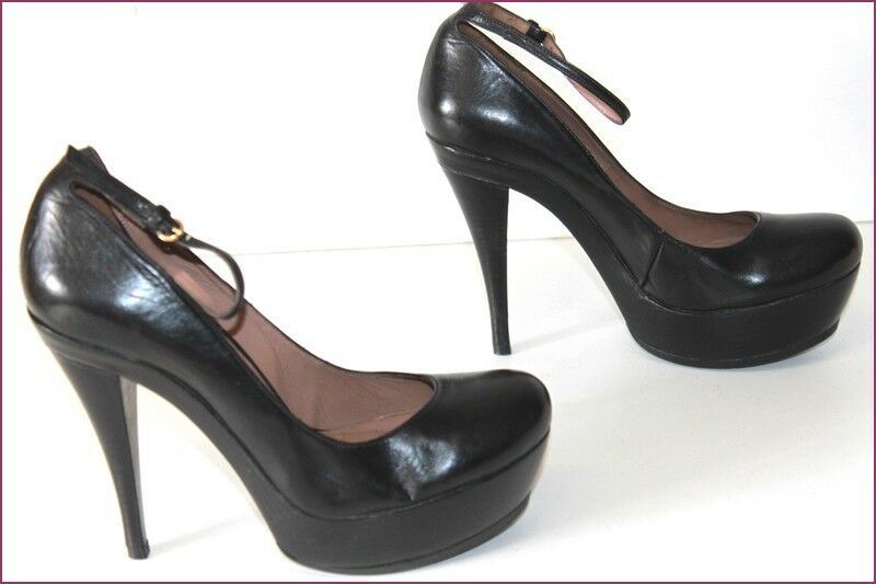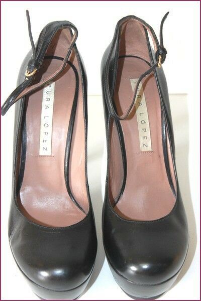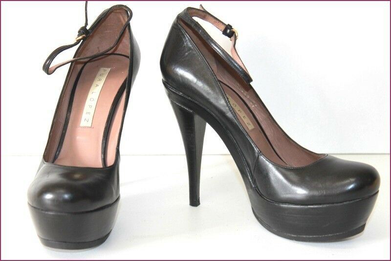 PURA LOPEZ Escarpins Tout Cuir Noir Plateforme Hauts Talons T 37 TBE