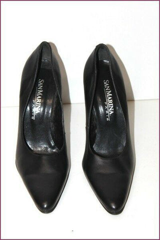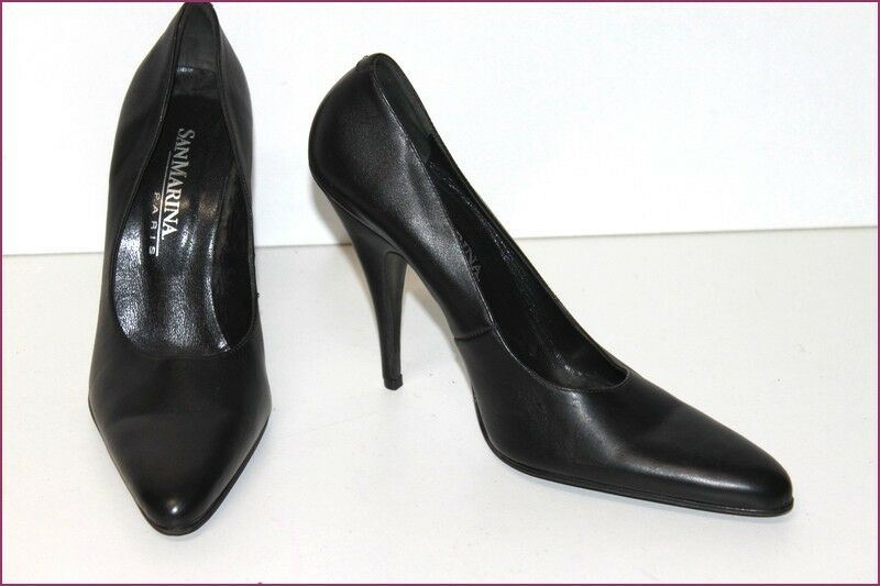 SAN MARINA Escarpins Cuir Lisse Noir Hauts Talons Fins T 39 TTBE