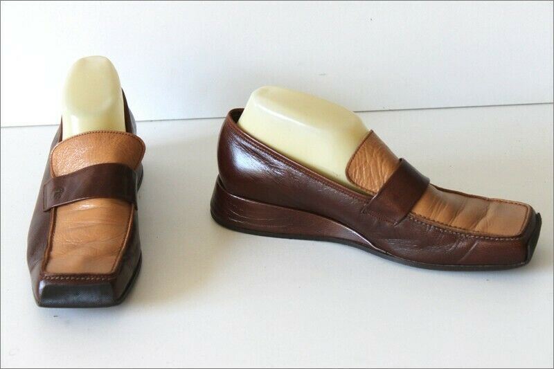 STEPHANE GONTARD Mocassins Cuir Bicolore Doublés Cuir T 39.5 TBE