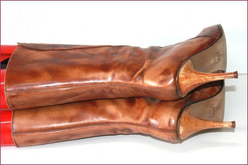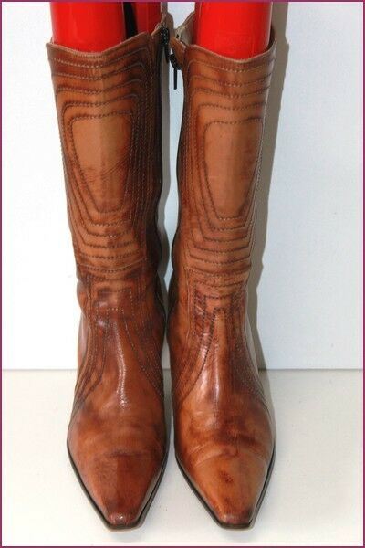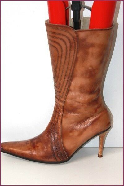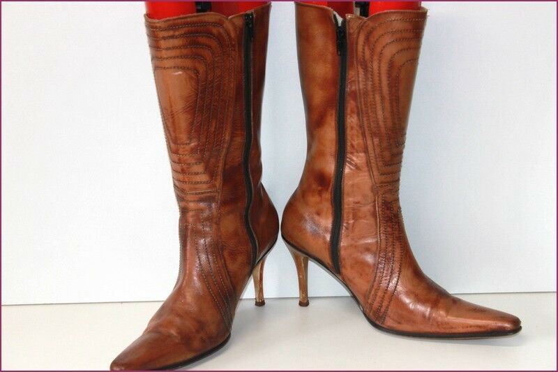 VELEZ Shoes Mi Bottes Pointues Tout Cuir Marron Nuancé T 37 BE