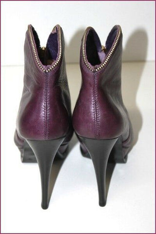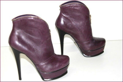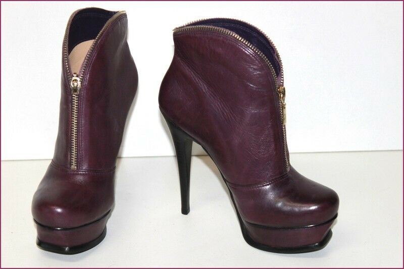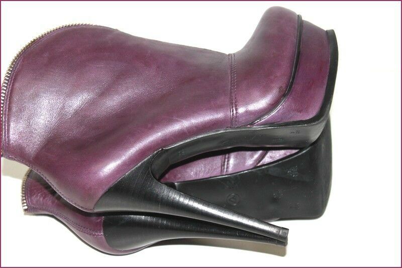 VIA UNO Boots Cuir Violet Talons Hauts Semelles Compensées T 37 TBE