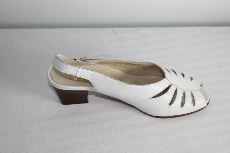 VINTAGE Escarpins HASLEY Tout Cuir Blanc T36 (3.5) TBE