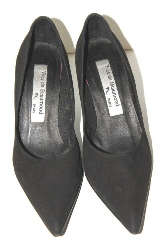 YVES DE BEAUMOND Escarpins Pointus Velours Noir T 38 TTBE